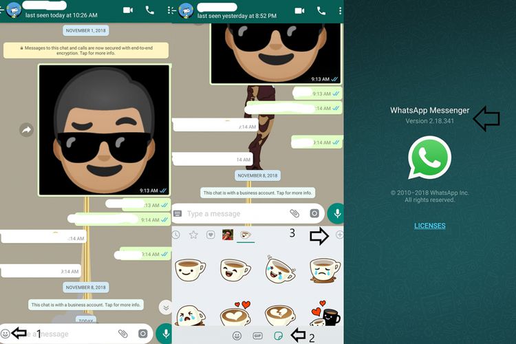 - Pastikan juga bahwa aplikasi WhatsApp anda sudah versi 2.18, jika ternyata belum silakan anda perbaharui dulu aplikasi wa nya ke versi 2.18 atau versi terbarunya yang sudah agar support penggunaan stiker.