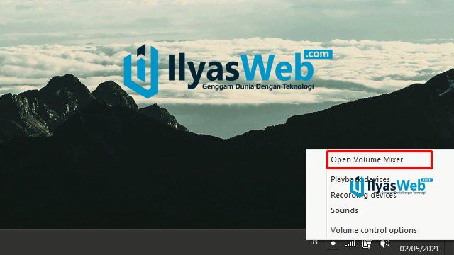 - Pertama, silakan kamu klik kanan pada ikon speaker yang ada di pojok kanan bawah, lalu klik opsi Open Volume Mixer.