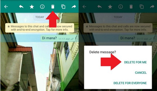 - Tahap terakhir yaitu silakan pilih opsi Hapus Untuk Saya (Delete for Me), untuk lebih jelasnya silakan lihat gambar diatas.