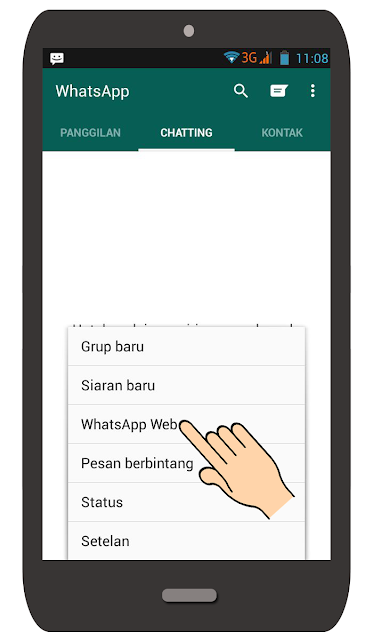 • Buka pada menu Chatting dan selanjutnya silakan cari menu WhatsApp Web jika tidak ada menu WhatsApp Web maka silakan update terlebih dahulu aplikasi WhatsApp nya ke versi terbaru.