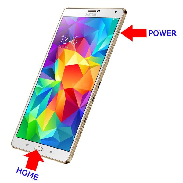 - Nah, sekarang barulah tekan tombol “Power” dan tombol “Home” tersebut secara bersamaan dan tahan minimal 1 detik untuk mulai mengambil gambar screenshot pada Samsung Galaxy Tab S8.4 LTE.