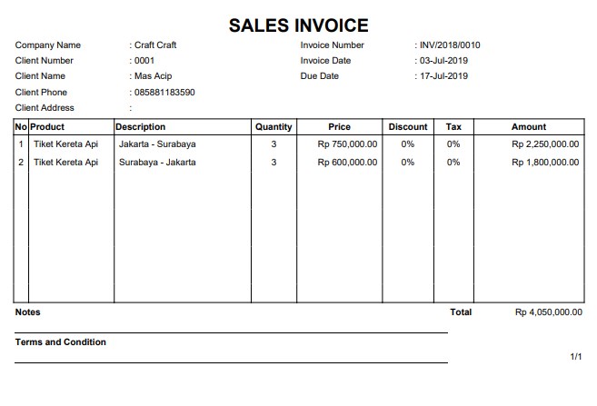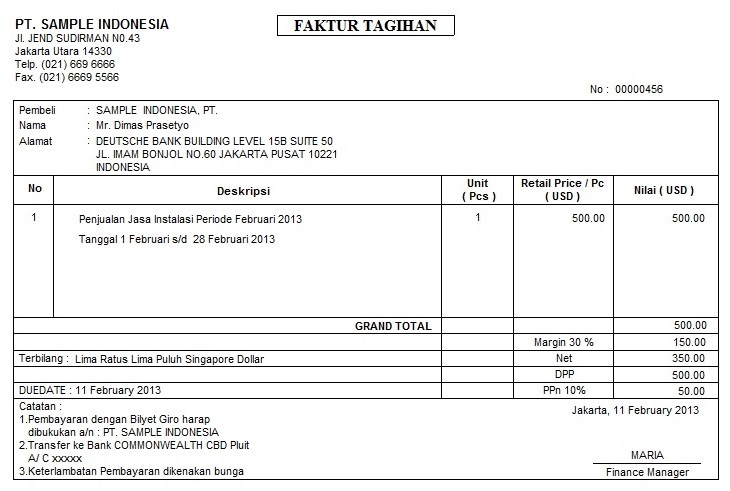 Hal itulah yang kemudian membuat perusahaan mengeluarkan invoice penagihan kepada konsumen atas barang atau jasa yang telah dibelinya. Berikut contohnya :