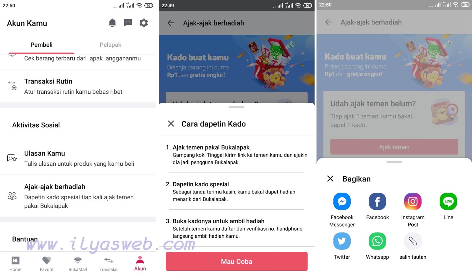 Uniknya, di aplikasi bukalapak ini sangat menguntungkan sekali, sebab yang mengajak dan yang diajak akan sama-sama dapetin hadiah/reward dari pihak bukalapak.