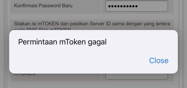 Oiya, biasanya setelah melakukan permintaan ulang kode mtoken melebihi 3 kali, akan muncul pesan error atau keterangan “Permintaan mToken gagal”.
