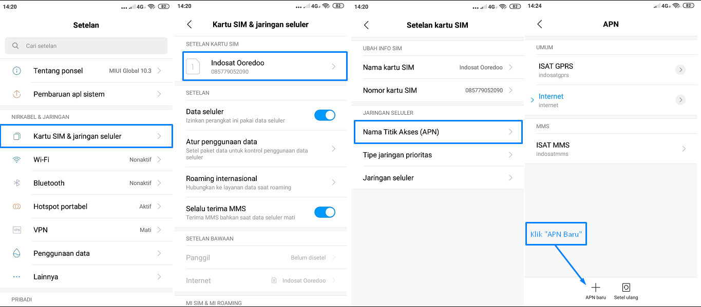 • Lanjutkan dengan klik pada tulisan “APN Baru“. (Lihat gambar dibawah ini)